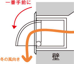 冬はルーバーを一番手前まで引出し、垂直に風を流します。これにより、空気の流れをつくり足元からくる冷えを防ぎます。 ※意匠登録済